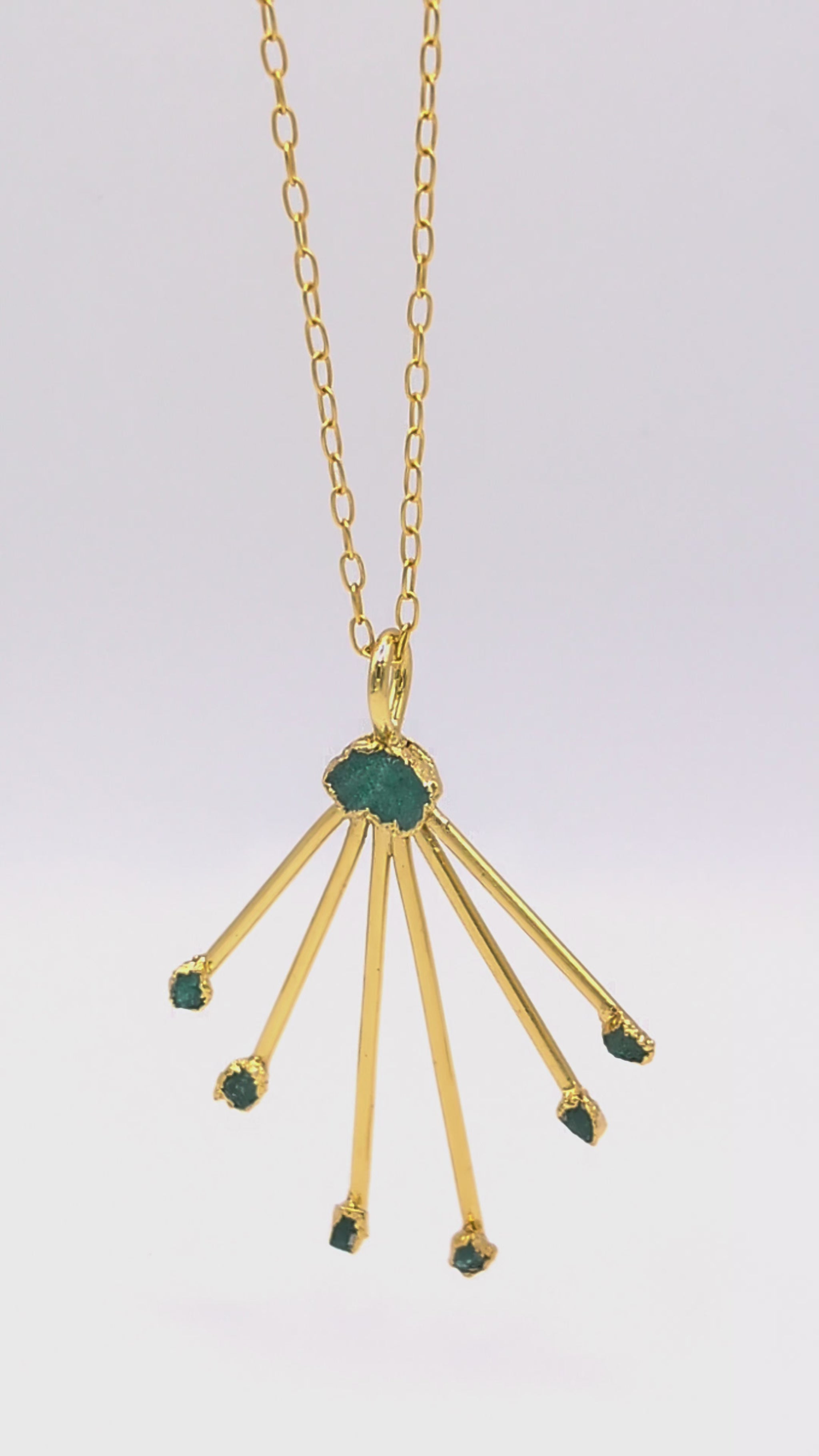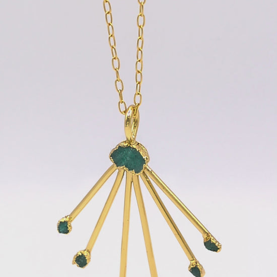 Handcrafted in 24k gold-plated bronze and adorned with raw Colombian emeralds, the Amia Pendant honors the wisdom of Indigenous peoples who have always lived in respect and connection with nature — and the woman, in Arahuaco belief, as the root that nurtures and sustains all life.